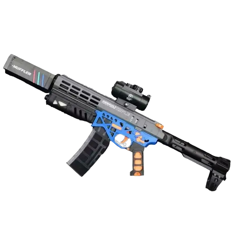 Experience the ultimate adrenaline rush with the Handi MK6 High Speed Skeleton Gel Blaster! This new rifle style gel gun boasts a slick skeleton design and a powerful tracer muffler with a mesmerizing smoke effect. Choose between manual or fully automatic fire modes with ease, and never run out of ammo with the included stick and clear drum mags. Powered by a special 7.4v modular battery, this is the perfect blaster for any action-loving enthusiast. Grab yours now and join the fun!