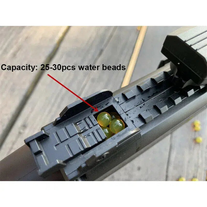 The M97 gel blaster is truly a masterpiece of craftsmanship. It is the first buckshot Gel Blaster Shotgun. Change between buckshot and slug simply by increasing the angle by pointing it downwards while cocking. The greater the angle, the more gel balls it’ll fire in one shot. Holding it level while cocking will fire one gel ball per shot.