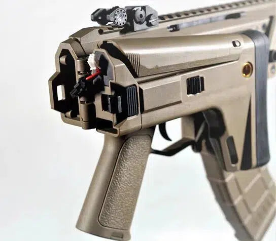 The JM ACR/R gel blaster is the highly anticipated gel blaster release. It has great out of the box performance and the shell, gears and gearbox are made from nylon. It's almost the same as the gen10 acr, but the acr/r has a ak style magazine.