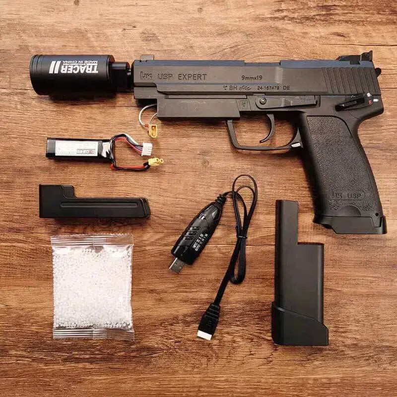 - Electric USP gel ball blaster with mosfet, providing semi/full auto shooting modes.