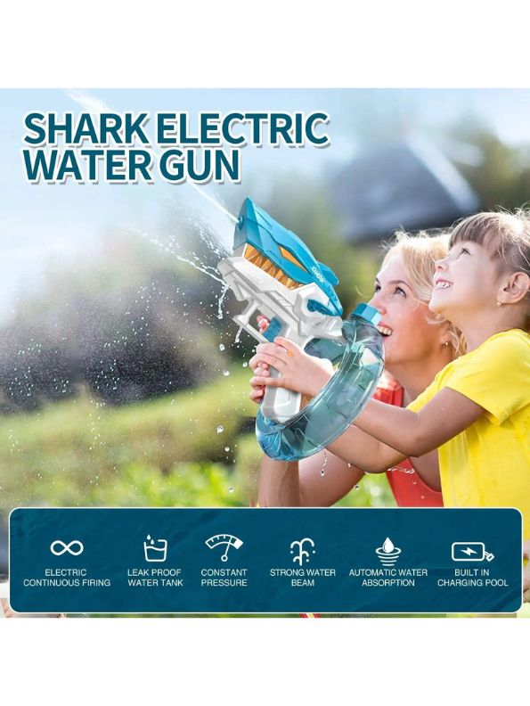 Aqua Blue - SharkBlast 3000 - High-Quality Electric Shark Water Gun Pichkari – Automatic High-Pressure Spray Gun for Kids’ Outdoor Summer Fun