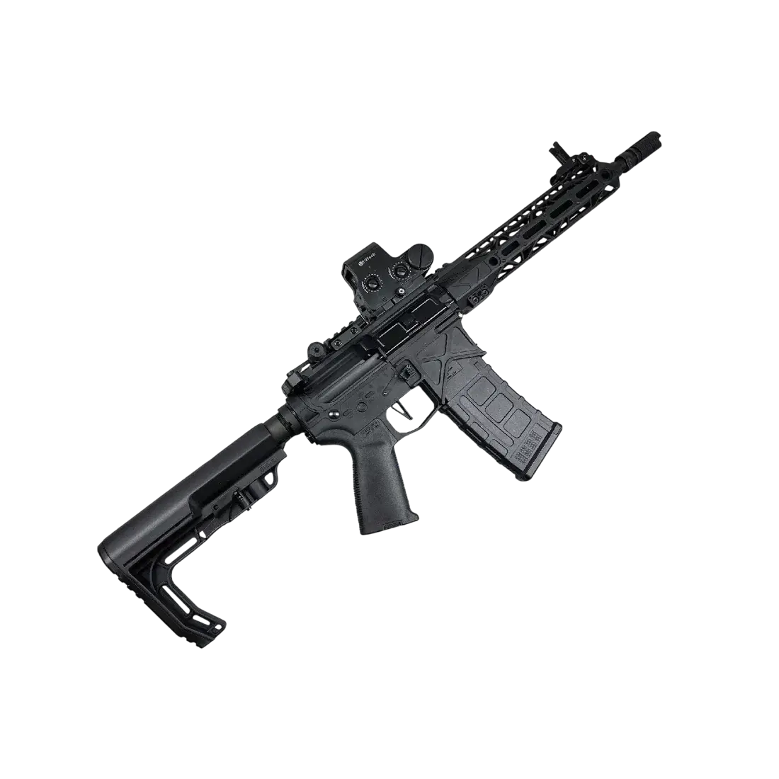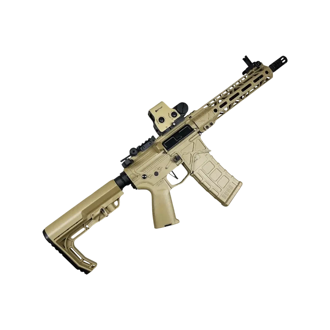 - built with metal parts like gears, dust cover, charging handle, outer barrel, one metal teeth piston ladder, buffer tube.